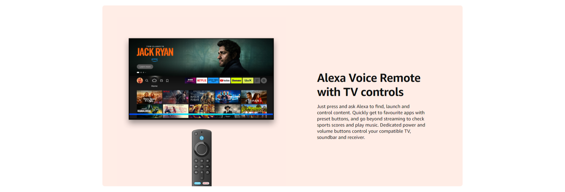 - Hands-free Alexa with built-in mic and speakers: control your compatible TV, soundbar and receivers with your voice, even from across the room.