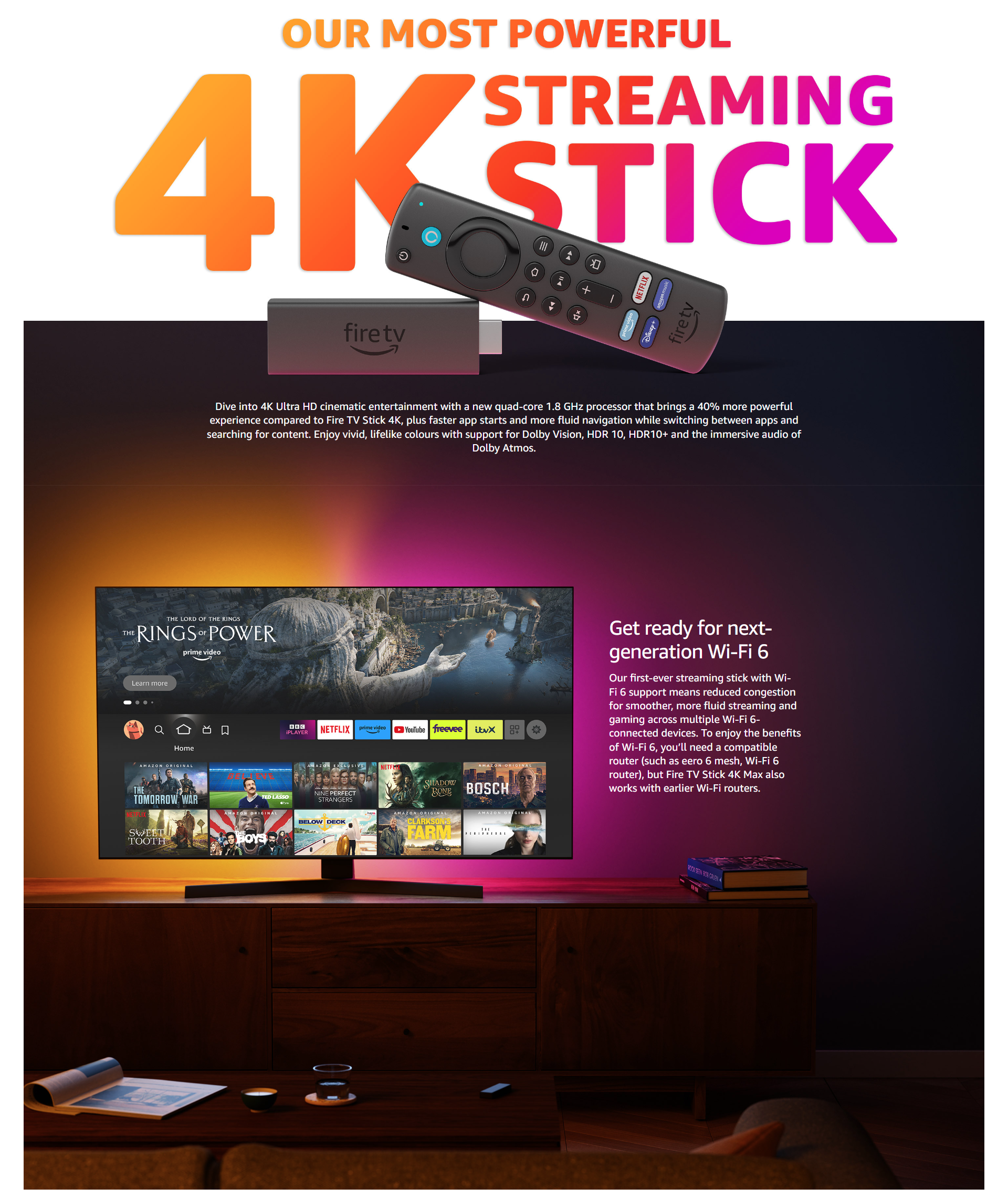 - Our most powerful streaming stick: 40% more powerful than Fire TV Stick 4K, with faster app starts and more fluid navigation.