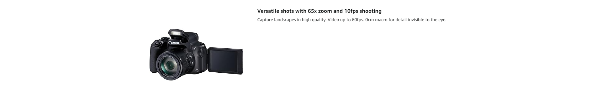 - Versatile shots with 65x zoom and 10fps shooting