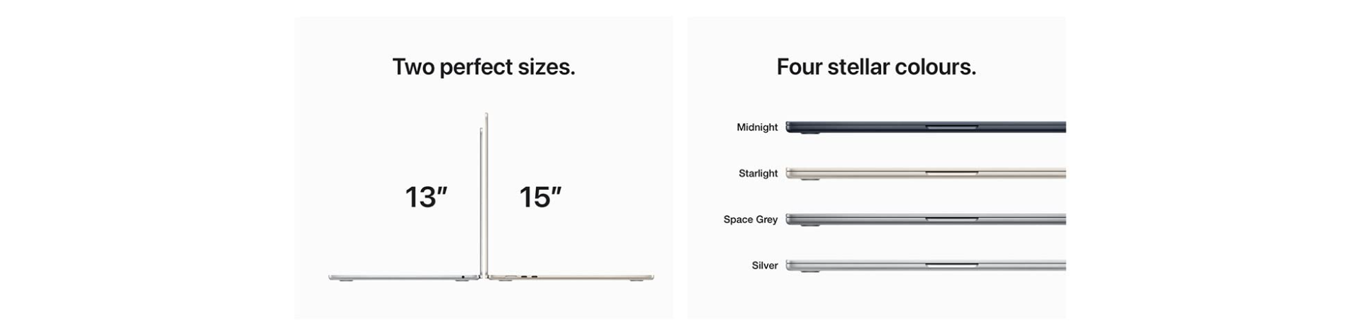 Apple MacBook Air 2023 (15.3-inch, M2, 8GB + 256GB SSD) - Midnight Apple MacBook Air 2023 (15.3-inch, M2, 8GB + 256GB SSD) - Silver Apple MacBook Air 2023 (15.3-inch, M2, 8GB + 256GB SSD) - Starlight Apple MacBook Air 2023 (15.3-inch, M2, 8GB + 256GB SSD) - Space Grey