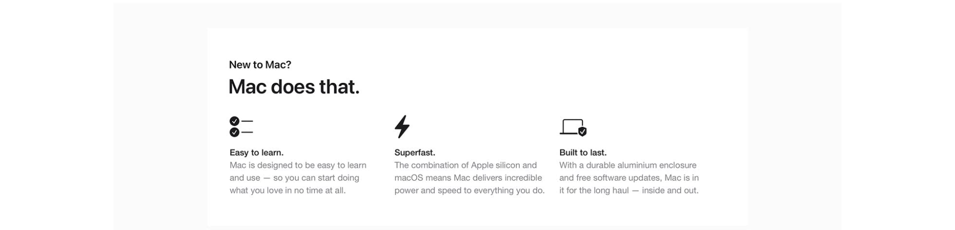 • SIMPLY COMPATIBLE — With thousands of apps optimised for Apple silicon, all your favourites are lightning fast in macOS, including Microsoft Excel and PowerPoint, Adobe Creative Cloud and Google Workspace. And free software updates keep things running smoothly and securely. (Apps are available on the App Store. Title availability is subject to change.)