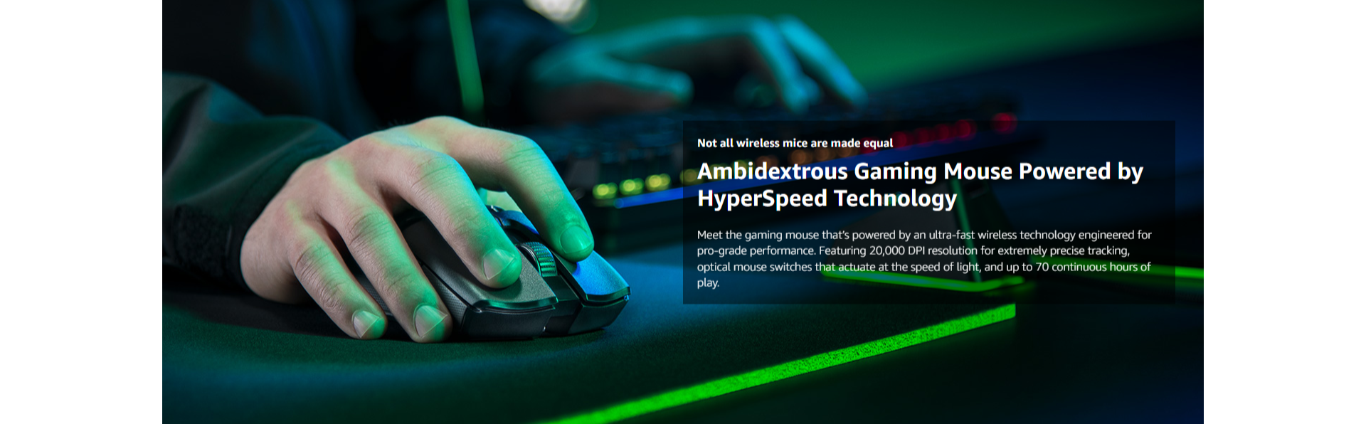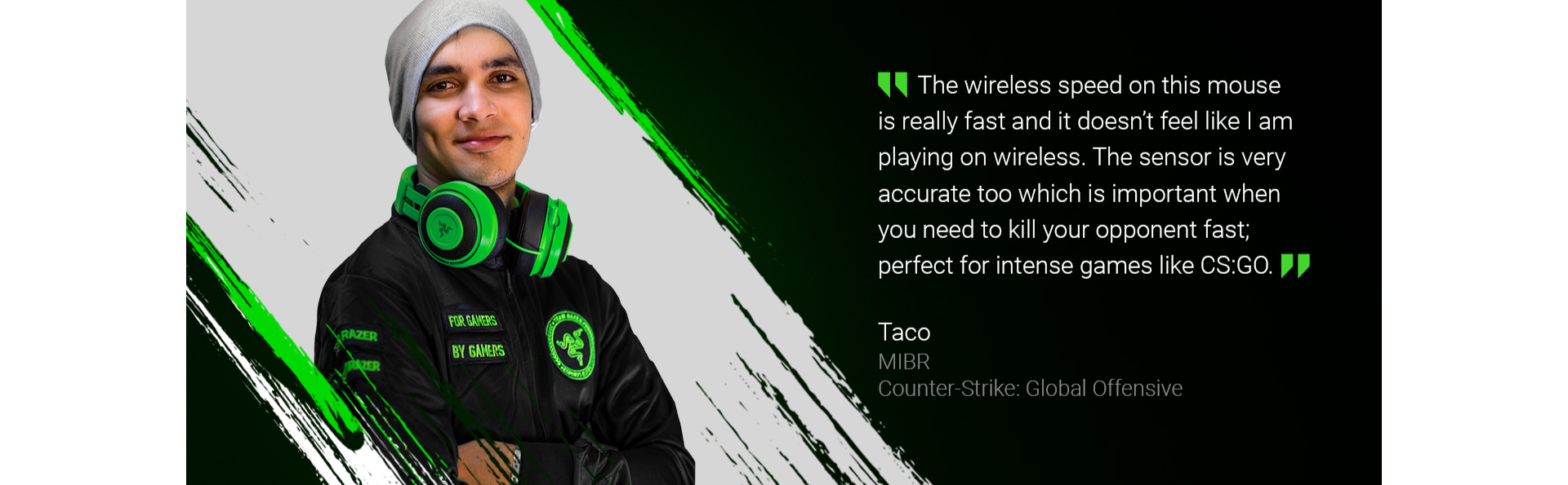 - Ultra-Fast Razer HyperSpeed Wireless Technology Faster than wired gaming mice: With a high-speed transmission, extremely low latency, and seamless frequency switching in the noisiest environments, you won’t even realize that you’re gaming with a wireless mouse