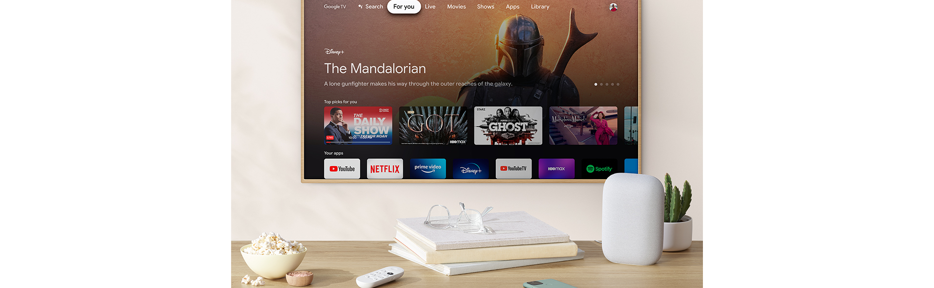 - Hands-free control, Can’t find the remote? Use other Google speakers and displays to control your TV with your voice, Just say "Hey Google, turn on the TV".
