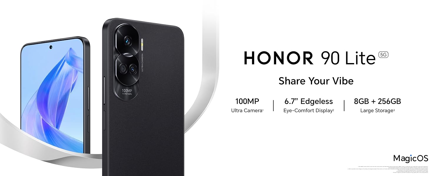 - 【6.7" FullView Display】The HONOR 90 Lite’s 6.7-inch HONOR FullView Display and ultra-thin 1.1mm bezels ensure an immersive viewing experience for both work and pleasure. The TÜV Rheinland-certified Low Blue Light display helps to promote healthier sleep and alleviate eye fatigue