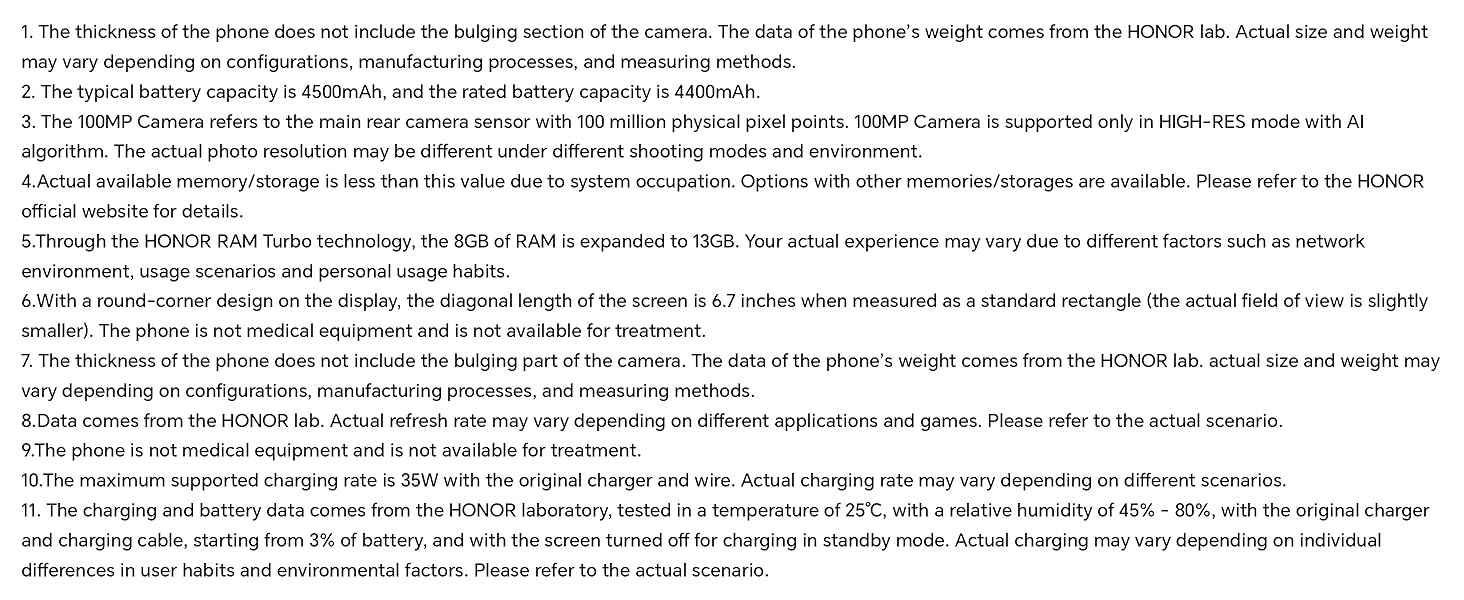 - 【8GB+256GB Large Storage】The HONOR 90 Lite can keep 57,808 pictures, 22,322 songs or 892 HD videos locally. The HONOR smartphone also equipped with HONOR RAM Turbo technology that extends the 8GB RAM with a whooping 5GB to run apps faster