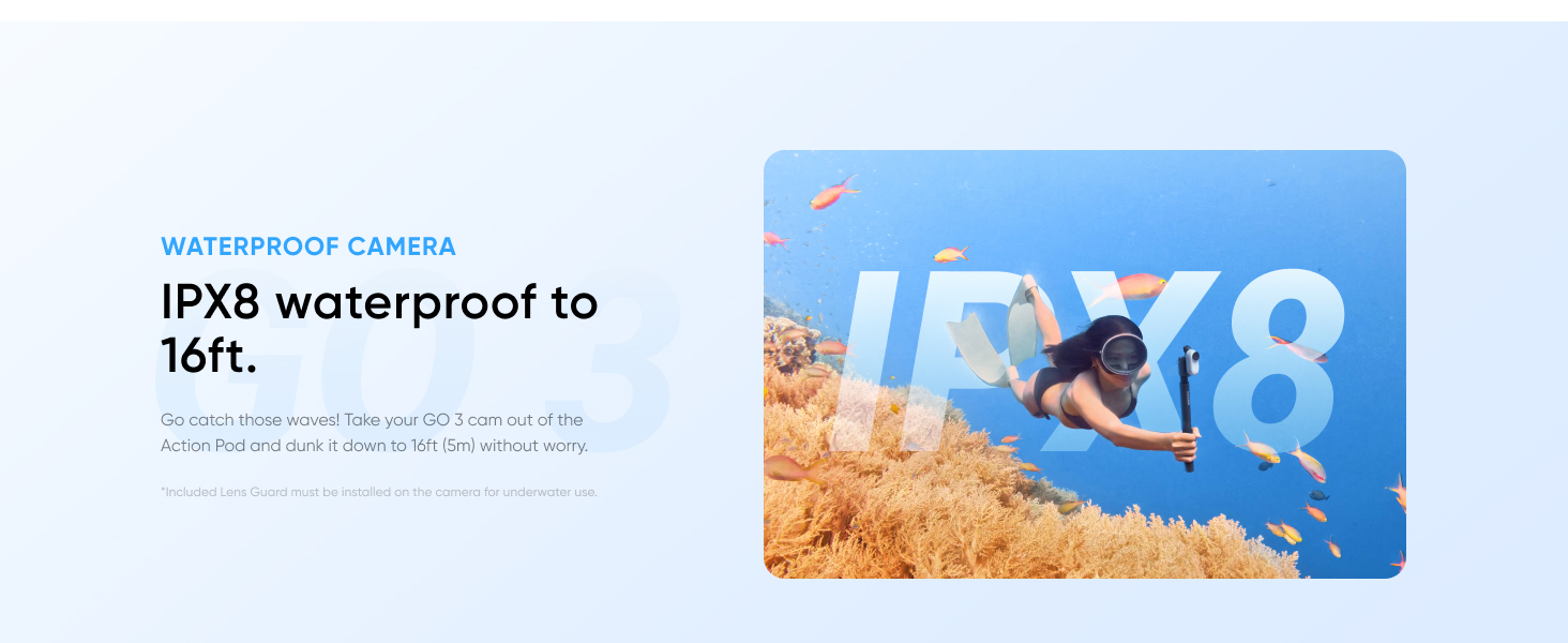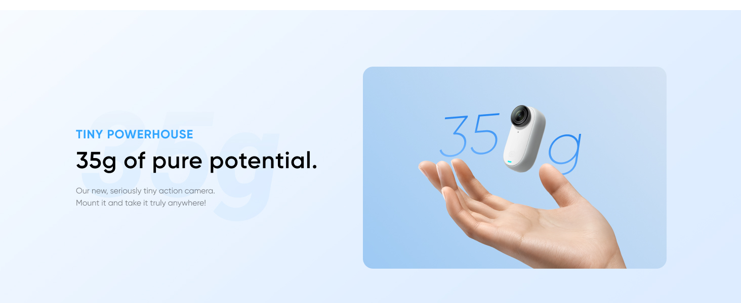 - Small and Lightweight: Weighing in at only 35g, GO 3 is an incredibly tiny action camera that you can take anywhere.