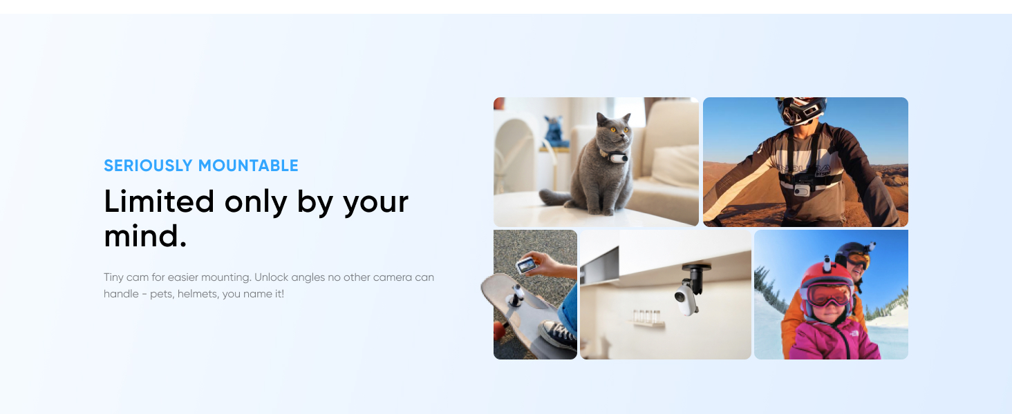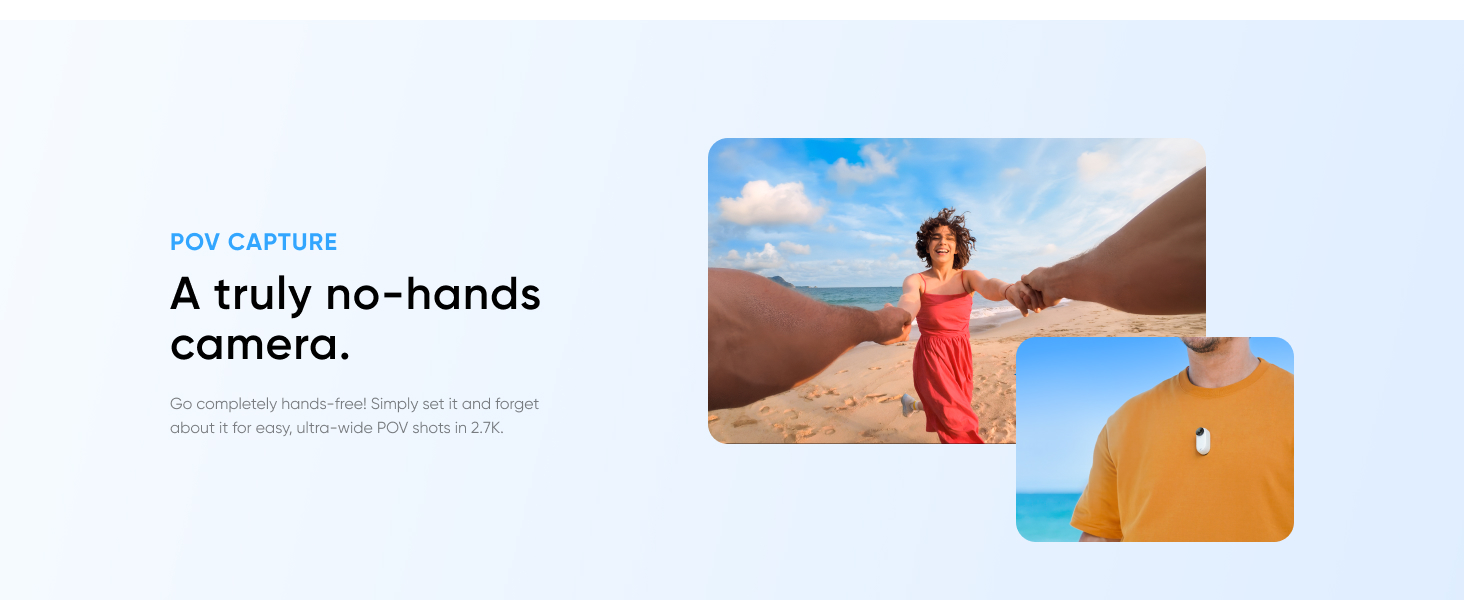 - Hands-Free POV: Capture effortless, hands-free POV videos or creative angles at 2.7K. Perfect for mountain biking, pets, travel, anything goes!