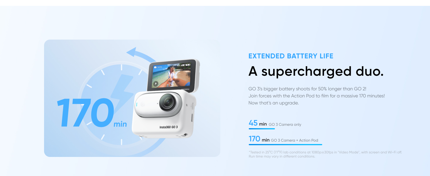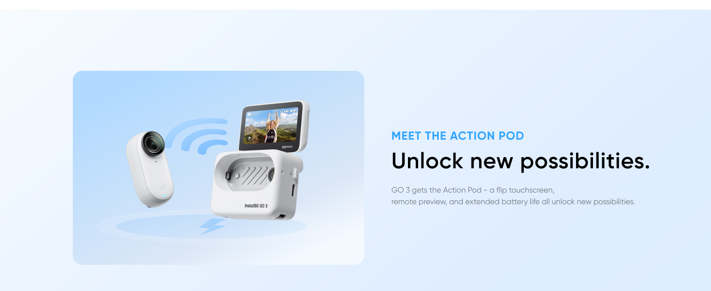 - Rugged and Waterproof: The Insta360 GO 3 cam is waterproof down to 5m (16ft), and the Action Pod is splashproof, too.