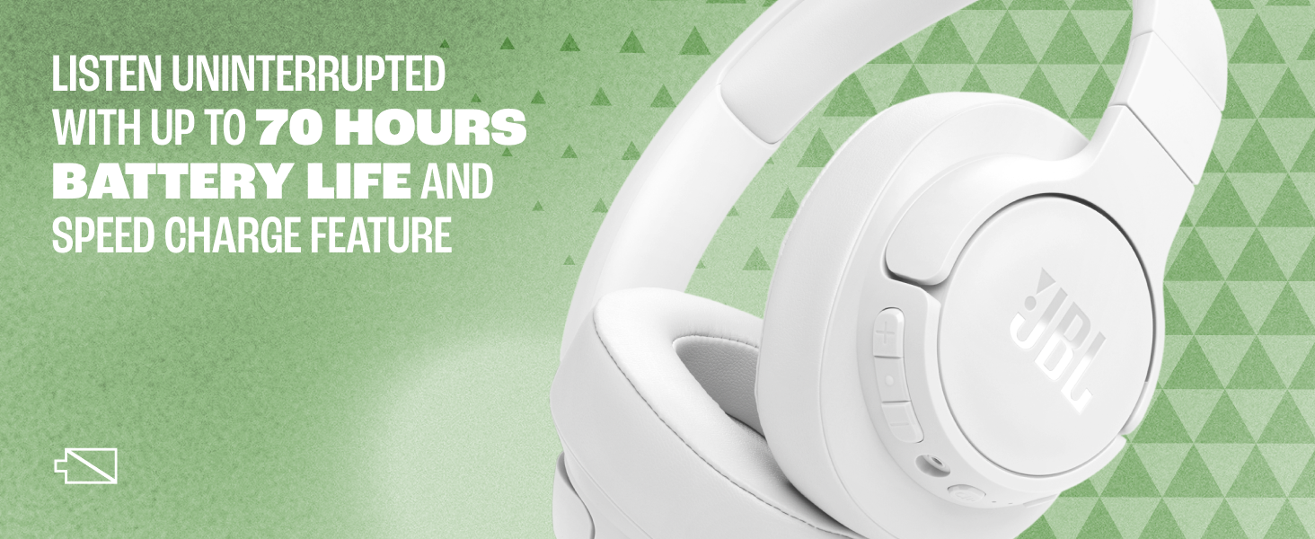 - Non-stop grooving: With up to 70 hours of battery life and a handy speed charge feature, your listening potential is endless – with JBL, nothing gets in the way of you and your tunes