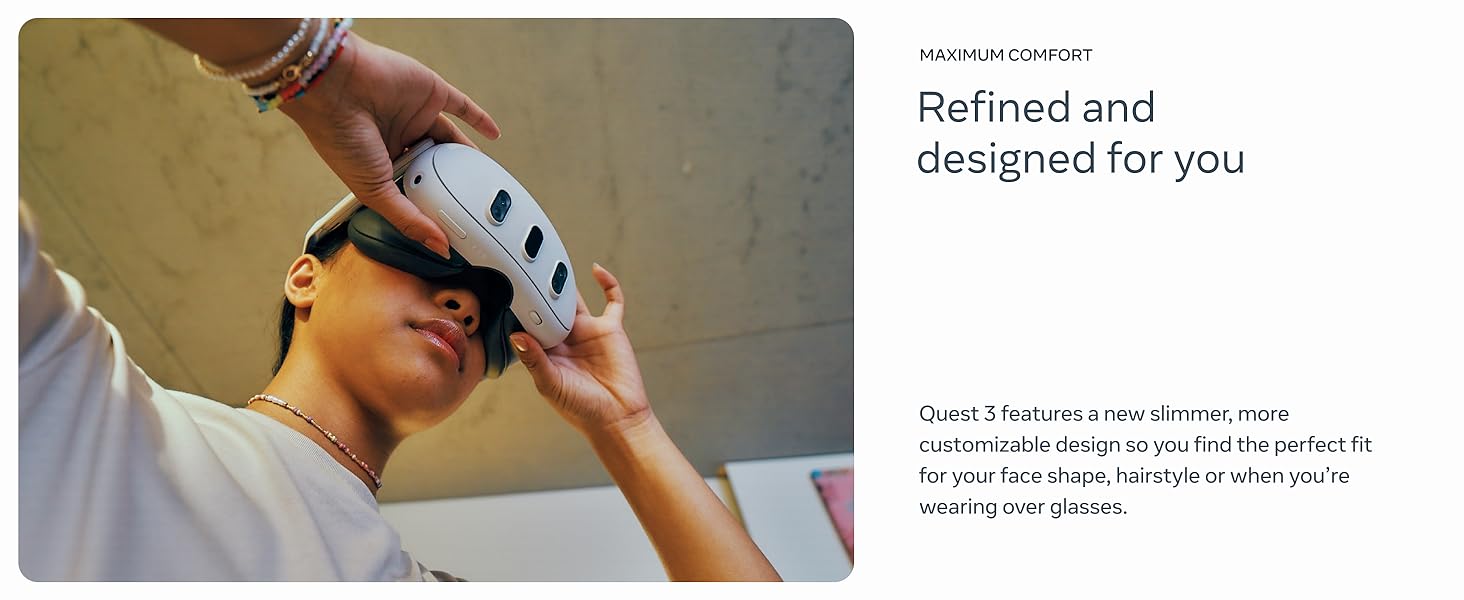 - Experience more immersion and dazzling visuals with the 4K+ Infinite Display (a nearly 30% leap in resolution from Quest 2) and rich 3D audio with enhanced sound clarity, bass performance and a 40% louder volume range than Quest 2.
