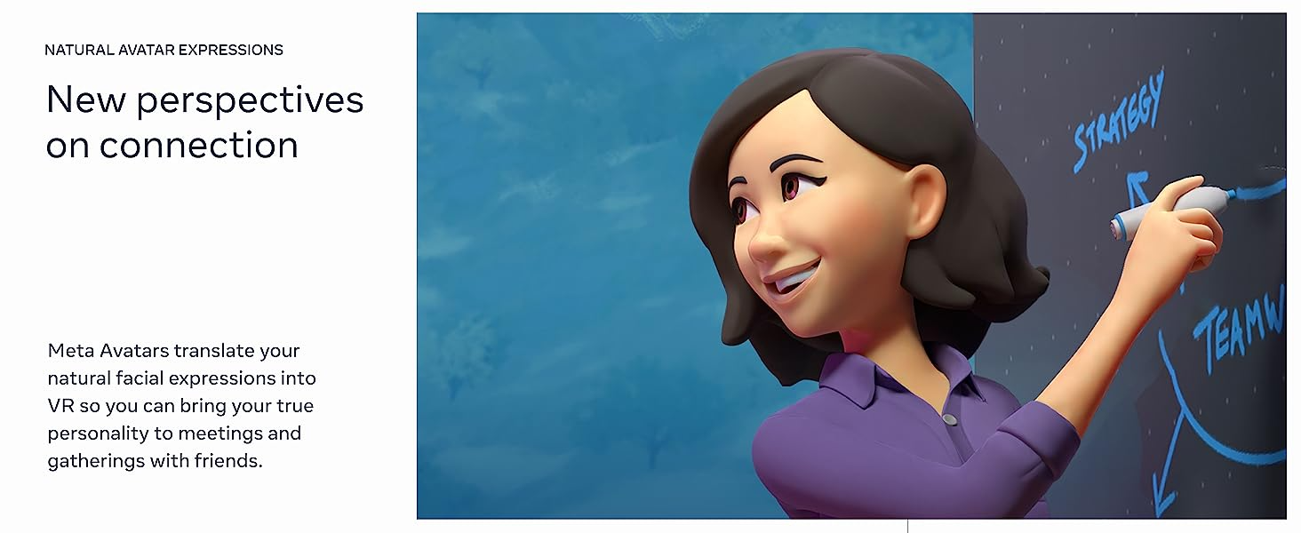 - Share your true emotions and reactions with real-time natural avatar expressions. Meta Avatars translate your natural facial expressions into VR so you can bring your true personality to meetings and gatherings with friends