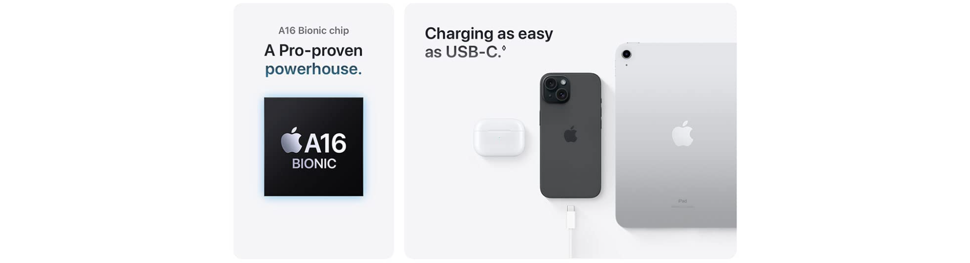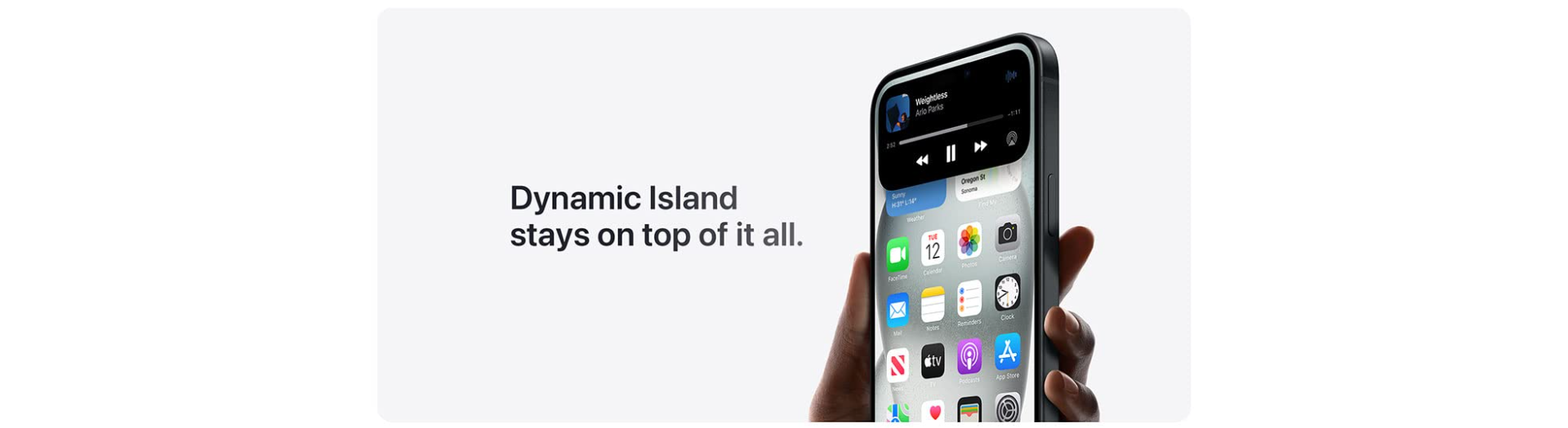 • POWERHOUSE A16 BIONIC CHIP — The superfast chip powers advanced features like computational photography, fluid Dynamic Island transitions and Voice Isolation for phone calls. And A16 Bionic is incredibly efficient to help deliver great all-day battery life.
