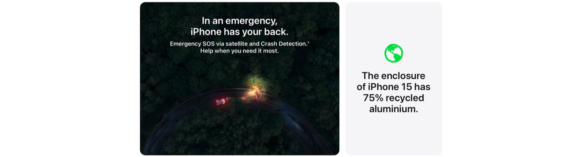 • VITAL SAFETY FEATURES — If you need emergency services and don’t have mobile service or Wi-Fi, you can use Emergency SOS via satellite. With Crash Detection, iPhone can detect a serious car crash and call for help if you can’t.