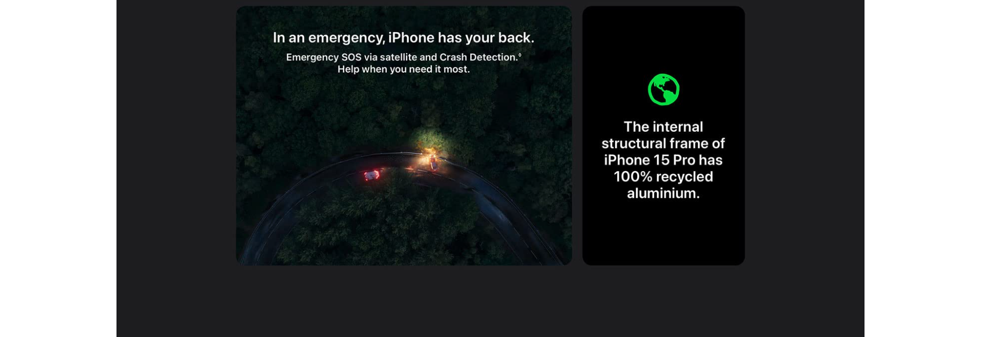 - VITAL SAFETY FEATURES — If you need emergency services and don’t have mobile service or Wi-Fi, you can use Emergency SOS via satellite. With Crash Detection, iPhone can detect a serious car crash and call for help if you can’t.