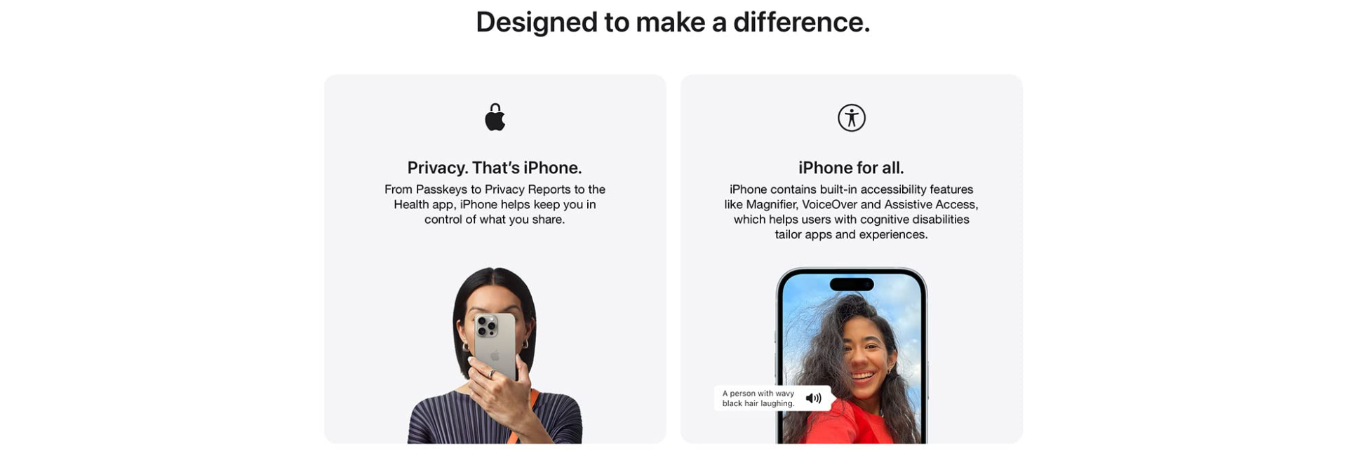 - DESIGNED TO MAKE A DIFFERENCE — iPhone comes with privacy protections that help keep you in control of your data. It’s made from more recycled materials to minimise environmental impact. And it has built-in features that make iPhone more accessible to all.