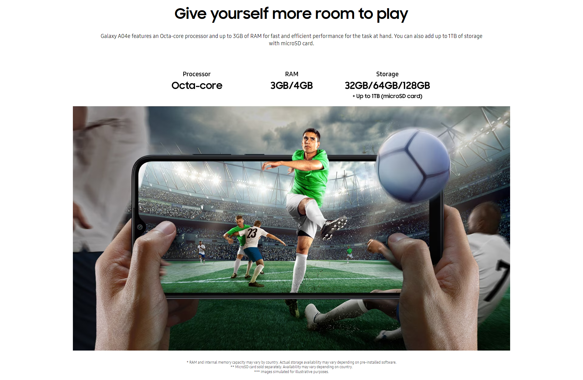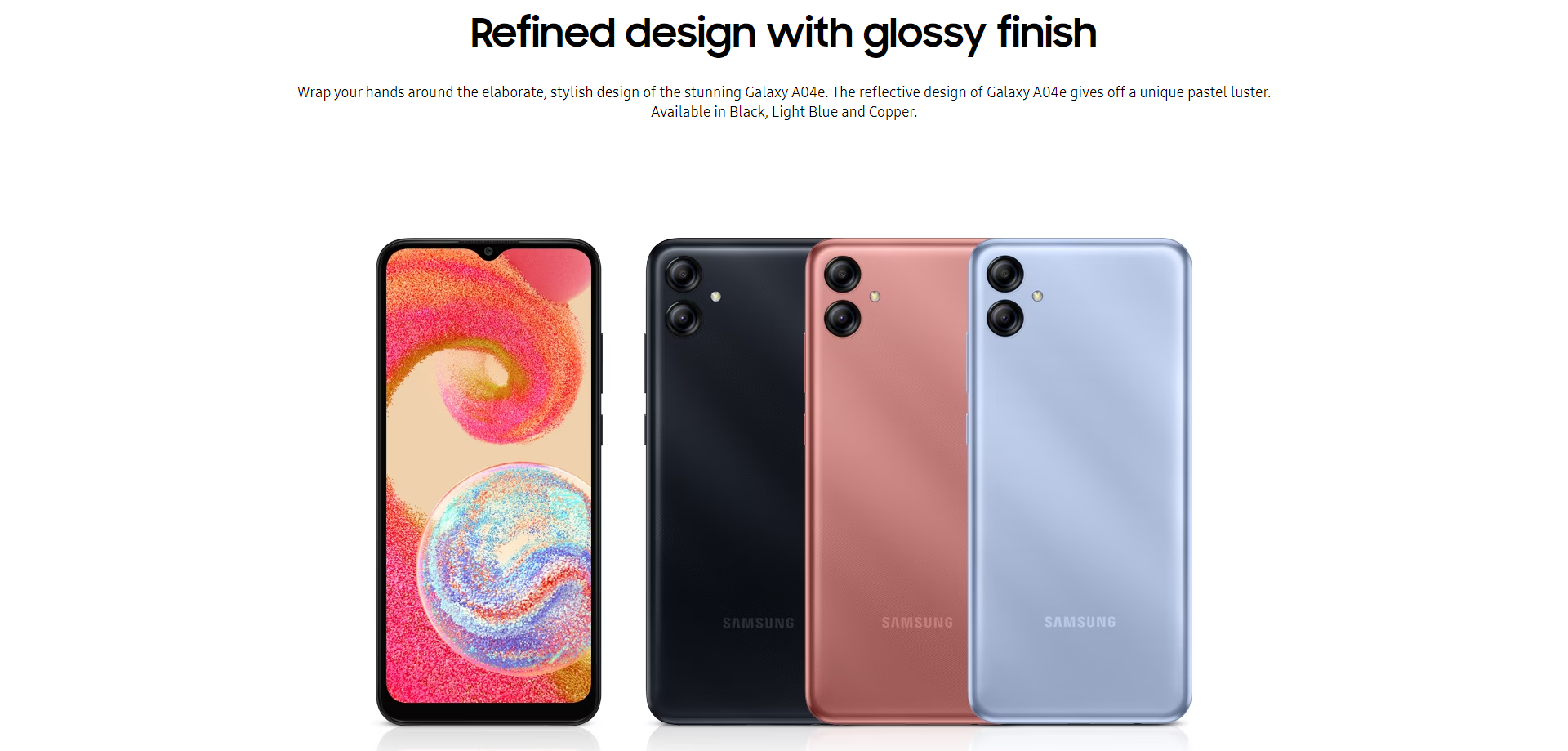 Samsung Galaxy A04e (Dual-Sim, 3+64GB) - Black Samsung Galaxy A04e (Dual-Sim, 3+64GB) - Light Blue Samsung Galaxy A04e (Dual-Sim, 3+64GB) - Copper