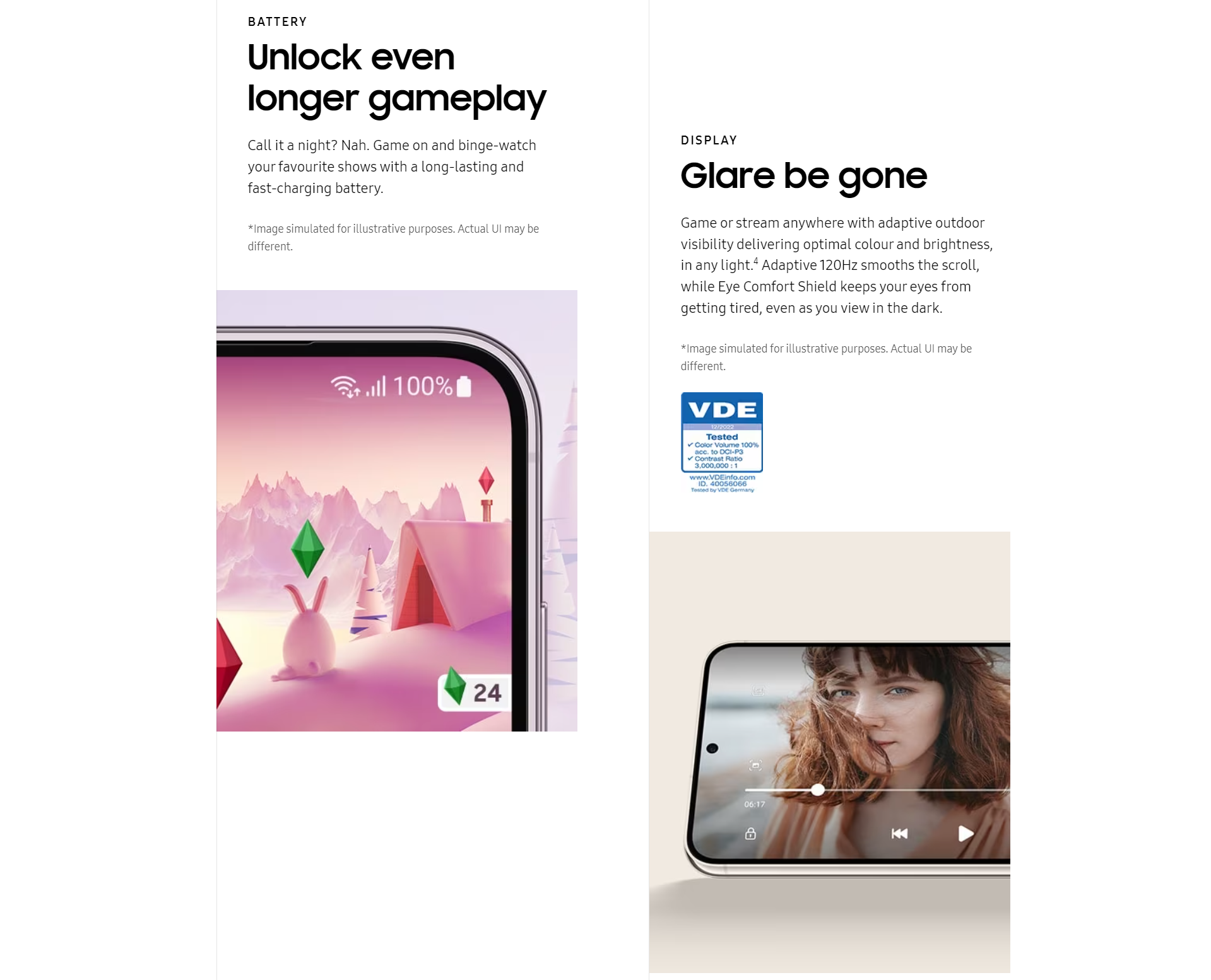 • Call it a night? Nah. Game on and binge-watch your favourite shows with the phones long-lasting and fast-charging battery.