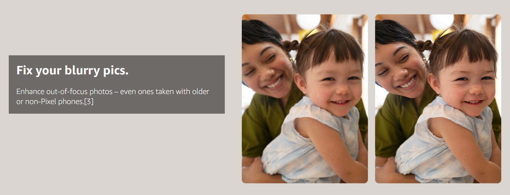 - With the Pixel Camera and Google Tensor G2’s advanced image processing, it’s easy to take great pictures in low light, fix blurry images, and remove distractions with a few taps in Google Photos