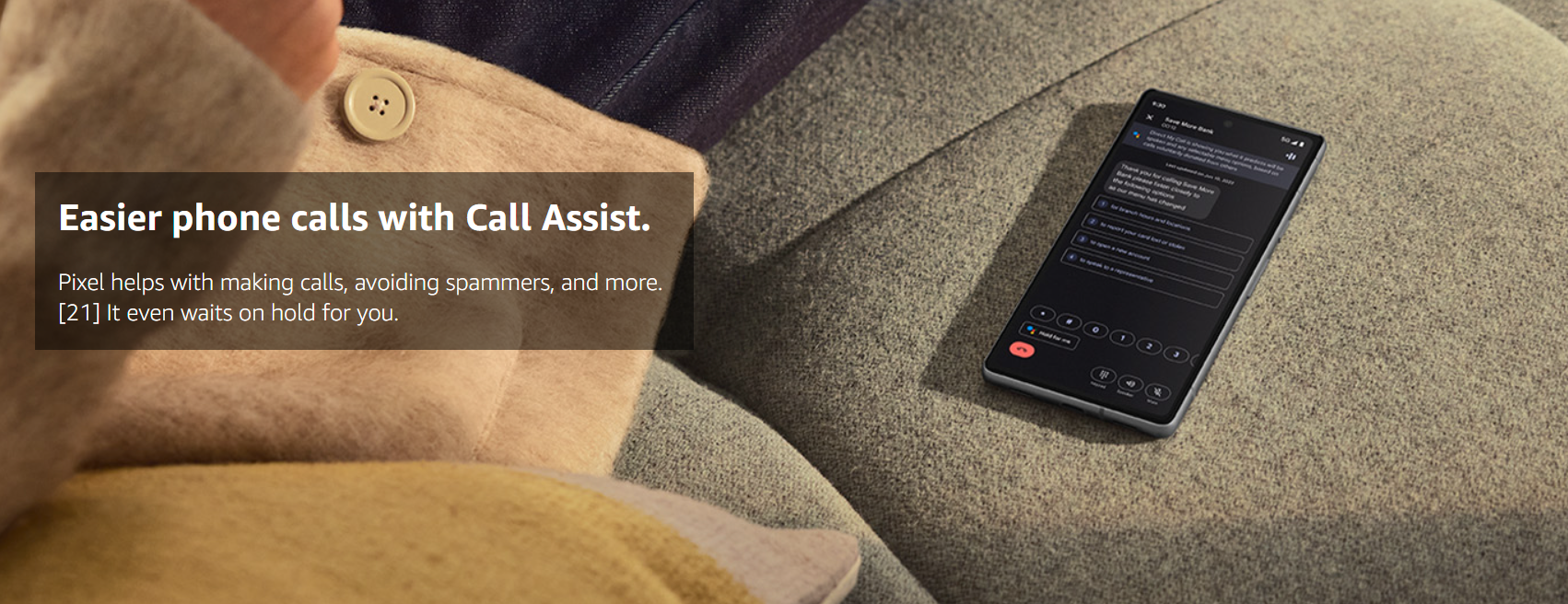 - With Pixel Call Assist, you can get help making calls, avoiding spammers, and waiting on hold; plus, Pixel 7a can filter out your caller’s background noise so you can hear them clearly even in noisy places