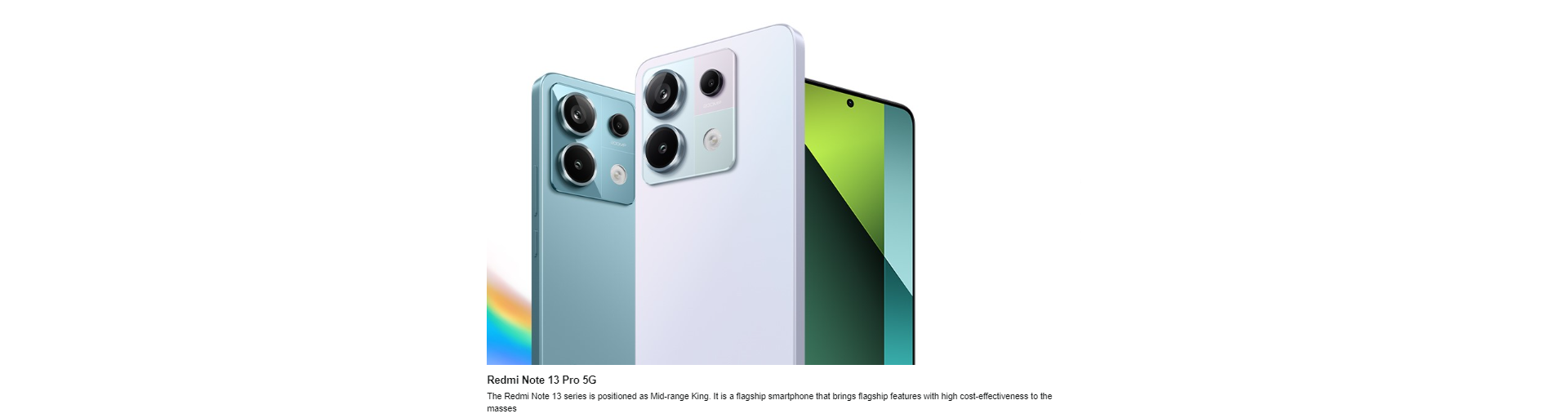 Xiaomi Redmi Note 13 Pro 5G (8+256GB) - Midnight Black Xiaomi Redmi Note 13 Pro 5G (8+256GB) - Aurora Purple Xiaomi Redmi Note 13 Pro 5G (8+256GB) - Ocean Teal